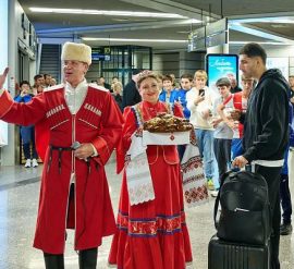 В Сочи прибыла сборная России и Перу по футболу для участия в товарищеских матчах Футболистов торжественно встретили в аэропорту, где их ждали хлеб-соль и казачьи напевы. Игроки также пообщались с юными футболистами и раздали автографы. Матч между сборными России и Чили состоится в субботу, 15 ноября, на стадионе «Фишт». Стадион откроется для болельщиков в 15:00,